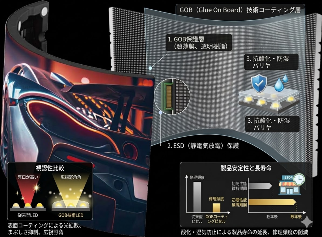 表面を樹脂で保護することで実現したGOB技術の耐久性と保護性能