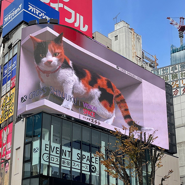 新宿駅東口の『クロス新宿ビジョン』は、日本で3D広告が広く認知されるきっかけとなった代表的事例のひとつです。