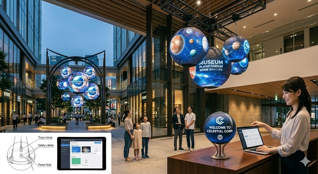 街中や商業施設を歩いているとき、ふと目に飛び込んでくる光の塊に足を止めたことはないでしょうか。これまでの平面的な画面とは異なり、どの角度から眺めても美しい映像が流れる球面ディスプレイは、その場にいる人々に新鮮な驚きを提供します。ただ映像を流すだけではなく、空間そのものの価値を高める存在として、いま多くの場所で注目を集めています。