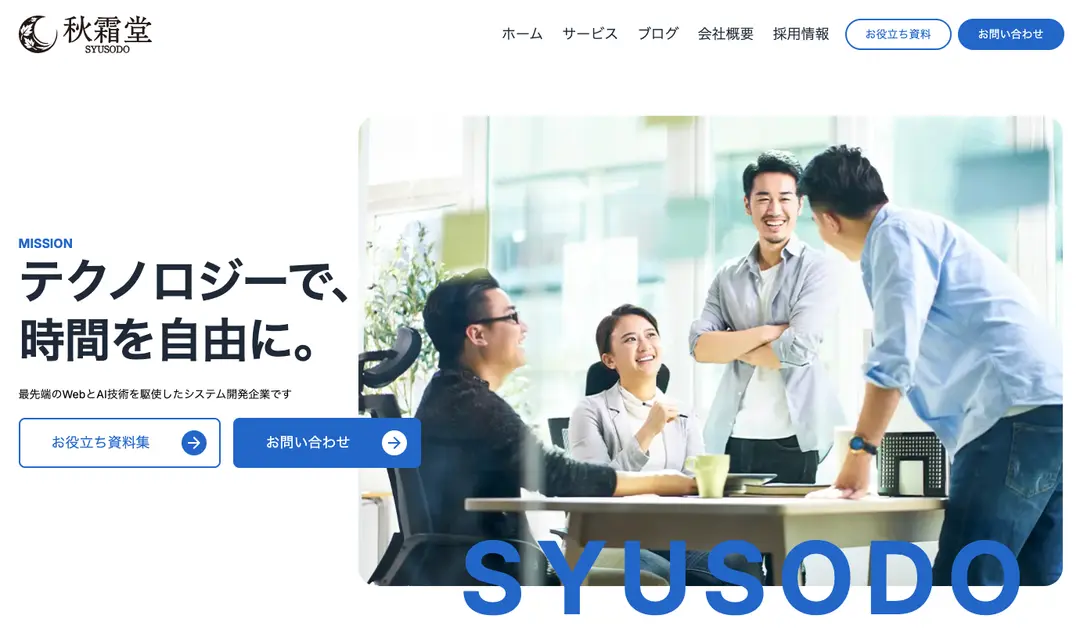 秋霜堂株式会社は最先端のソフトウェア技術を用いたWebシステムやAI開発に強みを持つエンジニア集団です。